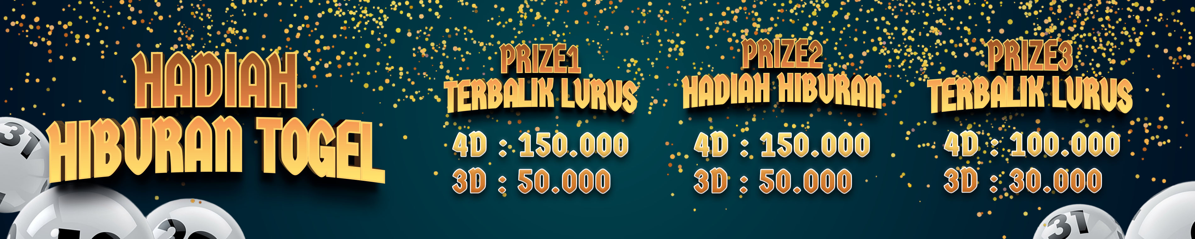 - Hadiah prize 2 : 4D = Rp. 150.000,- / 3D = Rp. 50.000,-